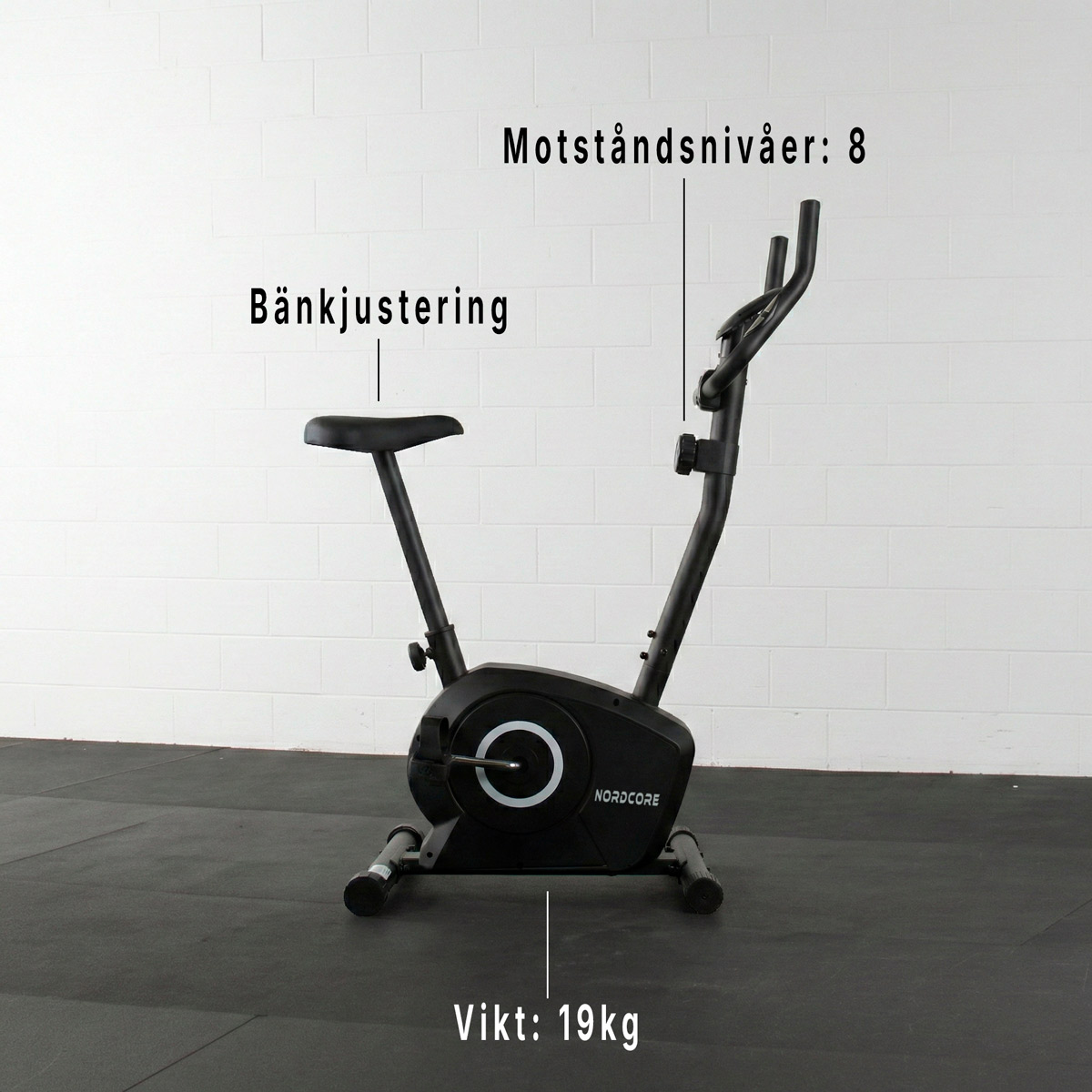 <p>Ett brett utbud av motståndsnivåer gör att du kan träna på olika sätt och hitta den motståndsnivå som passar dig. Den justerbara sadeln ger en bekväm och effektiv trampkänsla. Nordcore träningscykel är tillverkad av högkvalitativa stål- och plastmaterial.</p>