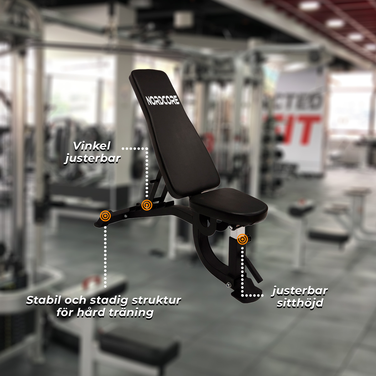 En träningsbänk är ett utmärkt val för hemmaträning. Den justerbara träningsbänken Nordcore 1500 möjliggör ett stort antal övningar med hantlar och skivstänger, tar liten plats och är lätt att flytta runt. Genom att justera bänkens vinkel kan du utföra en mängd olika rörelser som aktiverar olika muskelgrupper.