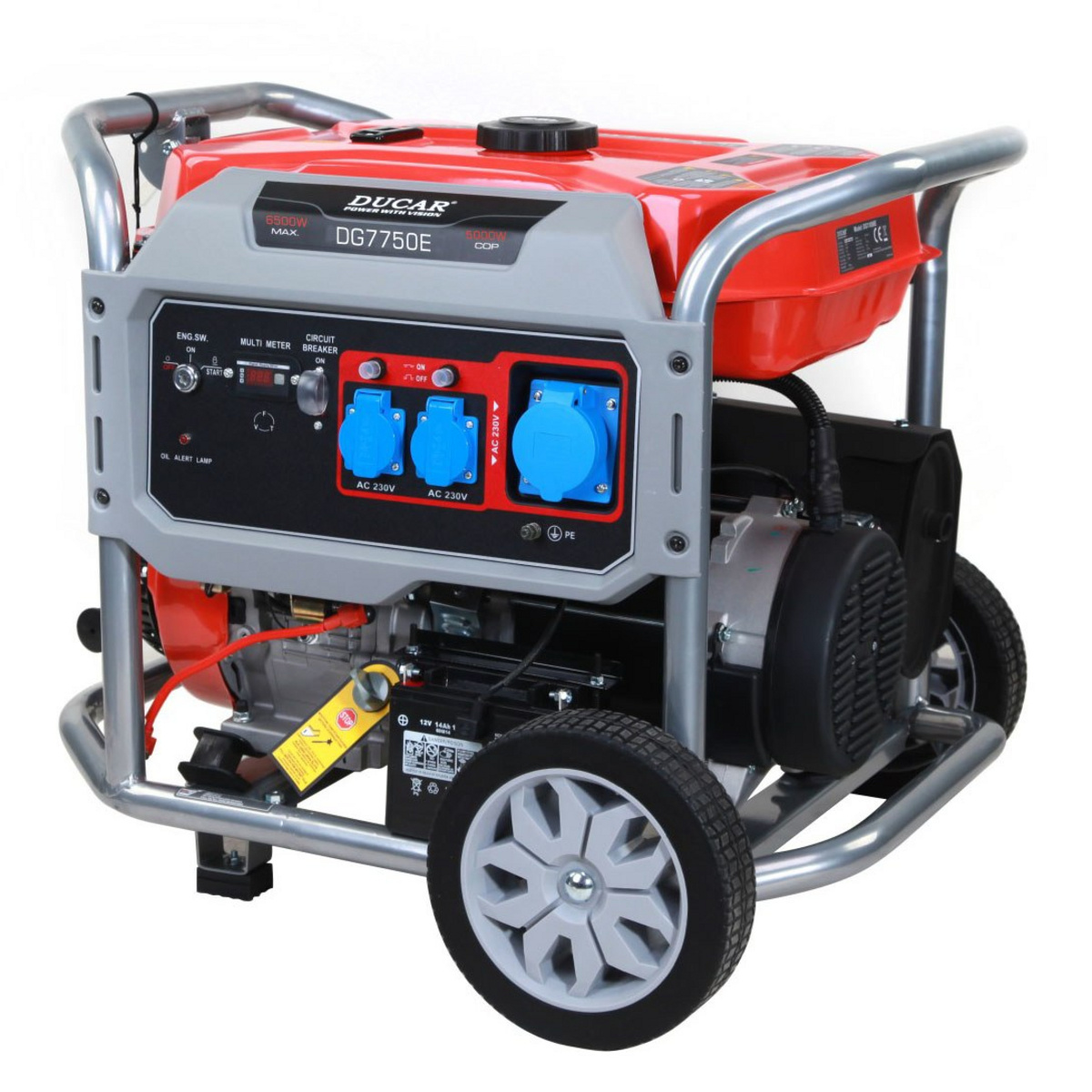 Utrustad med elstart, Ducars bensindrivna enhet med hjul och handtag tar elektriciteten dit den behövs.