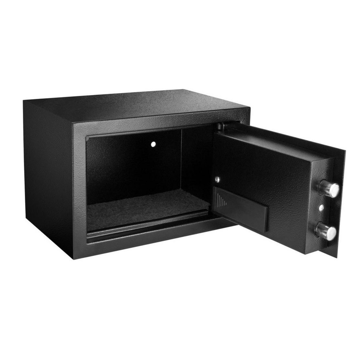 Skydda dokument och värdesaker från obehörig åtkomst. Kassaskåpet styrs med en programmerbar kod på 3-8 siffror, vilket gör att flera personer kan komma åt kassaskåpet. Två nycklar medföljer, vilket möjliggör nödöppning med nyckel. Det elektroniska låset drivs med 4x1,5V AA-batterier, som ingår i leveransen.