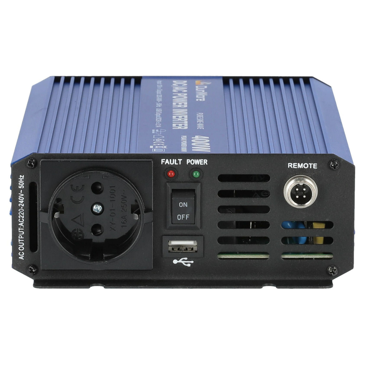 En högkvalitativ 12 V sinusvågsomvandlare som ger 400 W kontinuerlig effekt.