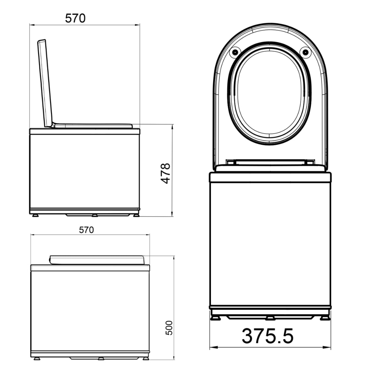 - Mått (L x B x H): 375 x 570 x 515 mm
