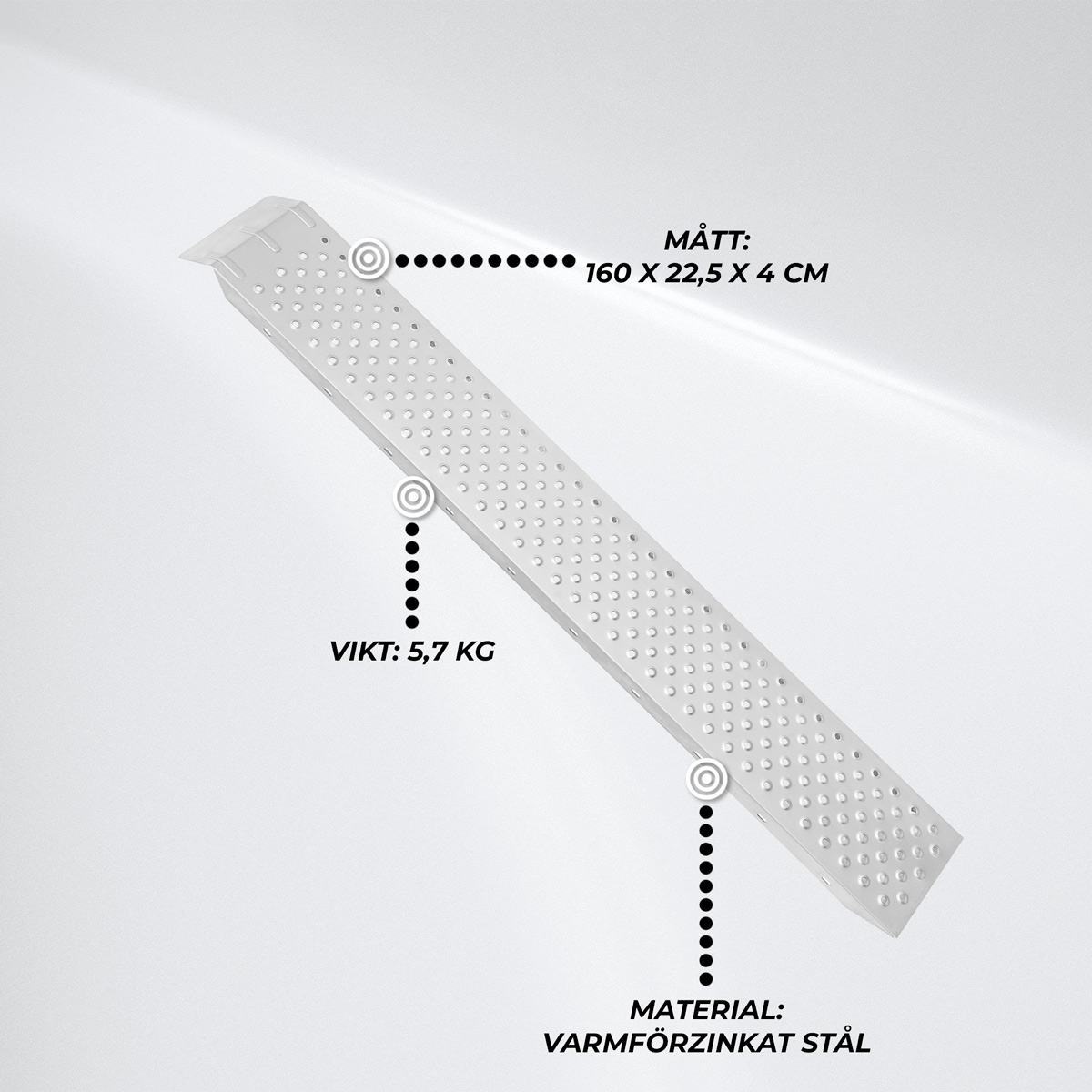 Den stabila varmförzinkade stålkonstruktionen kombinerar hållbarhet och säkerhet. Varmförzinkningen ger utmärkt rostskydd och lång livslängd, vilket gör att lastrampen fungerar pålitligt år efter år.