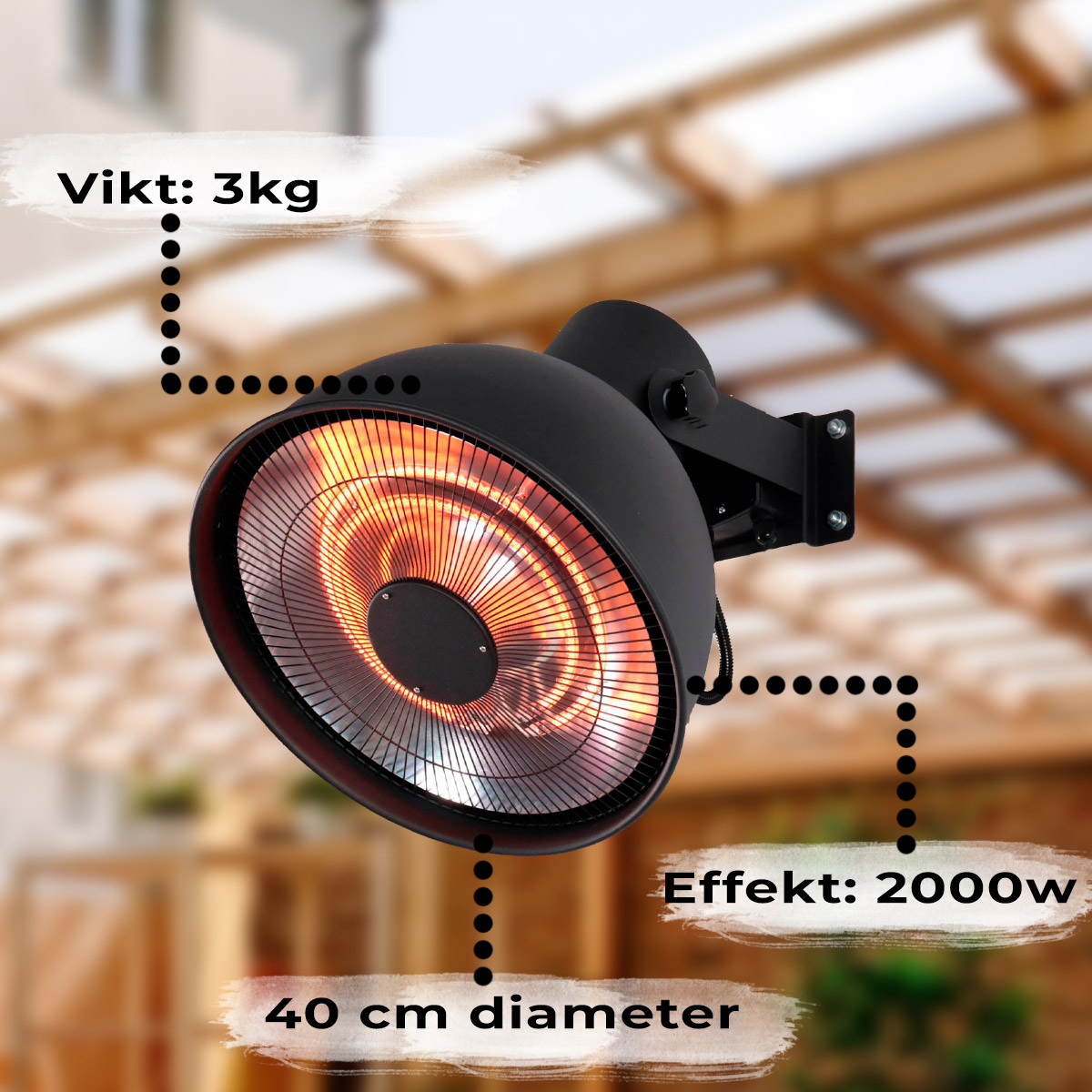 manuellt manövrerad. Den har en diameter på 60 centimeter.<span style="font-weight: bold;"><br></span></p><p><span style="font-weight: bold;">Produktinformation:</span></p><ul><li>2st halogenvärmare (0/800/1200/2000W)</li><li>1,6 m kabel</li><li>40 cm i diameter</li><li>IPX4-klassificering</li><li>Manuell kontroll</li><li>Svart färg</li><li>Effekt: 220-240V ~ 50Hz 2000W</li><li>CE / GS / ROHS</li><li>Vikt: 3 kg</li><li>Höjd: 42 cm</li><li>Bredd: 55 cm</li><li>Djup: 42 cm</li></ul><p><span style="font-weight: bold;">Förpackningens mått:</span></p><ul><li>Vikt: 4,8 kg</li><li>Längd: 47 cm</li><li>Höjd: 47 cm</li><li>Bredd: 48 cm</li></ul>SEK00https://www.hobbyhallen.se/media/catalog/product/f/o/fornorth-wall-deluxe-2000-1.jpg?width=320&height=440https://www.hobbyhallen.se/media/catalog/product/T/e/Terassilammitin-Wall-Heater-Deluxe-2000W-PrioA-1.jpg?width=320&height=440https://www.hobbyhallen.se/media/catalog/product/T/e/Terassilammitin-Wall-Heater-Deluxe-2000W-PrioA-2-SWE.jpg?width=320&height=440https://www.hobbyhallen.se/media/catalog/product/T/e/Terassilammitin-Wall-Heater-Deluxe-2000W-PrioA-3-SWE.jpg?width=320&height=440https://www.hobbyhallen.se/media/catalog/product/f/o/fornorth-wall-deluxe-2000-2.jpg?width=320&height=440https://www.hobbyhallen.se/media/catalog/product/f/o/fornorth-wall-deluxe-2000-3.jpg?width=320&height=440add-to-cartshort_description:<ul><li>Fast kontroll</li><li>2st halogenvärmare</li><li>Effekt: 2000W</li></ul>