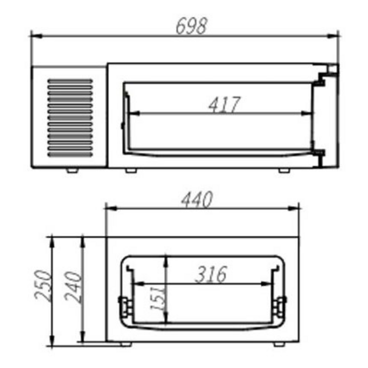 - Mått (B x B x H): 698 x 440 x 250 mm