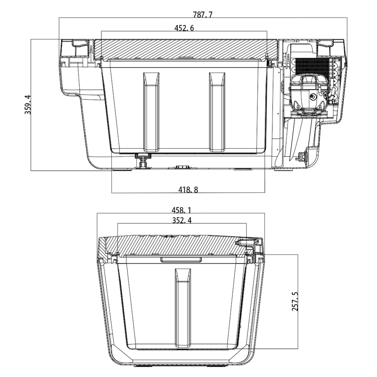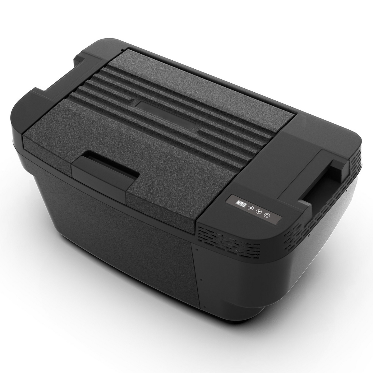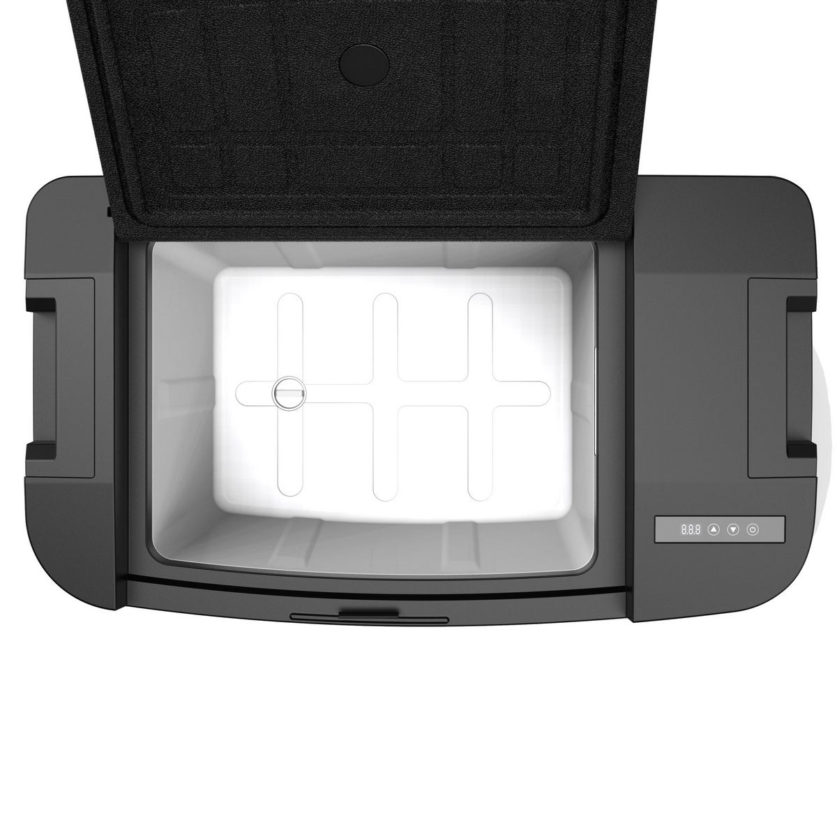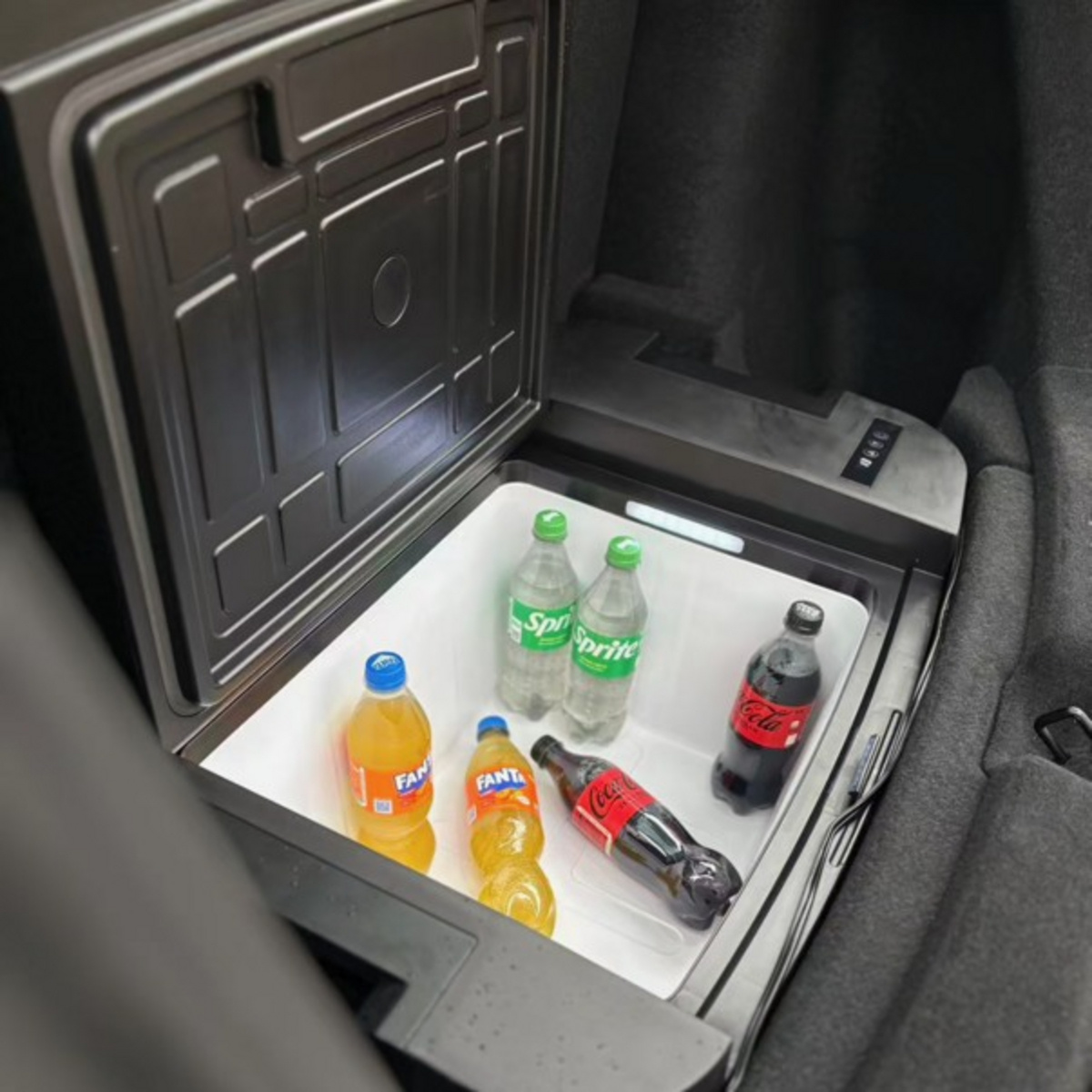 Kompressordriven 12/24/230 V 35-liters kyl och frys för Tesla Model Y Sub Trunk. Högeffektiv, kyler ner till -20°C med mycket låg energiförbrukning oavsett utomhustemperatur. Fjärrstyrd via en lättanvänd mobilapp.