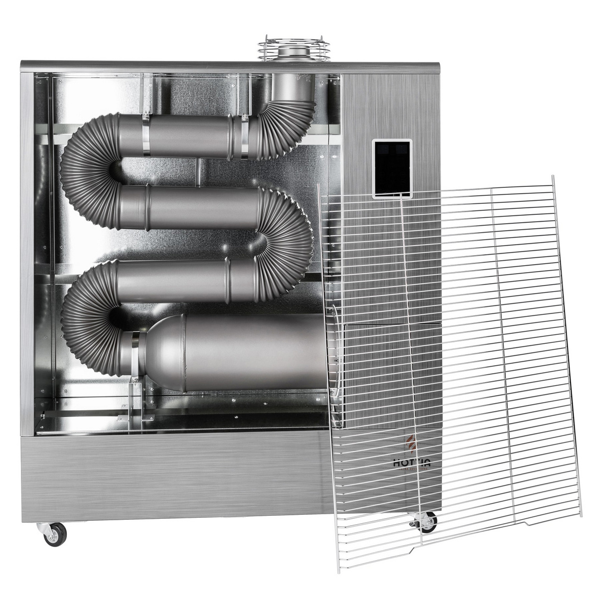Den infraröda strålningen från Hottia dieselvärmare värmer upp det fasta materialet i värmezonen, som fungerar som ett värmeutjämnande och värmelagrande material. Från materialen i utrymmet överförs värmen jämnt och behagligt till det omgivande utrymmet. Värmen från Hottias värmare är aldrig för varm. Den högeffektiva förbränningsprocessen med flera komponenter och den exakt kontrollerade bränsletillförseln säkerställer att inga obehagliga lukter eller kolmonoxid släpps ut i luften. Hottia-värmare kräver inte rökgasutsläpp, förutsatt att utrymmet som ska värmas upp är tillräckligt och korrekt ventilerat. För att garantera personsäkerheten rekommenderas att man använder ett rökgasutlopp för uppvärmning av bostadsutrymmen.