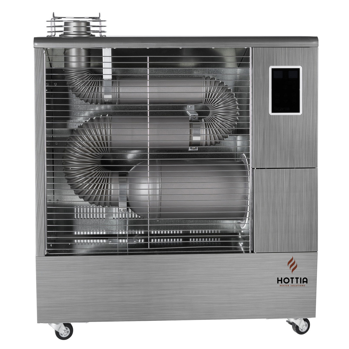 Den infraröda strålningen från Hottia dieselvärmare värmer upp det fasta materialet i värmezonen, som fungerar som ett värmeutjämnande och värmelagrande material. Från materialen i utrymmet överförs värmen jämnt och behagligt till det omgivande utrymmet. Värmen från Hottias värmare är aldrig för varm. Den högeffektiva förbränningsprocessen med flera komponenter och den exakt kontrollerade bränsletillförseln säkerställer att inga obehagliga lukter eller kolmonoxid släpps ut i luften. Hottia-värmare kräver inte rökgasutsläpp, förutsatt att utrymmet som ska värmas upp är tillräckligt och korrekt ventilerat. För att garantera personsäkerheten rekommenderas att man använder ett rökgasavlopp vid uppvärmning av bostadsutrymmen.