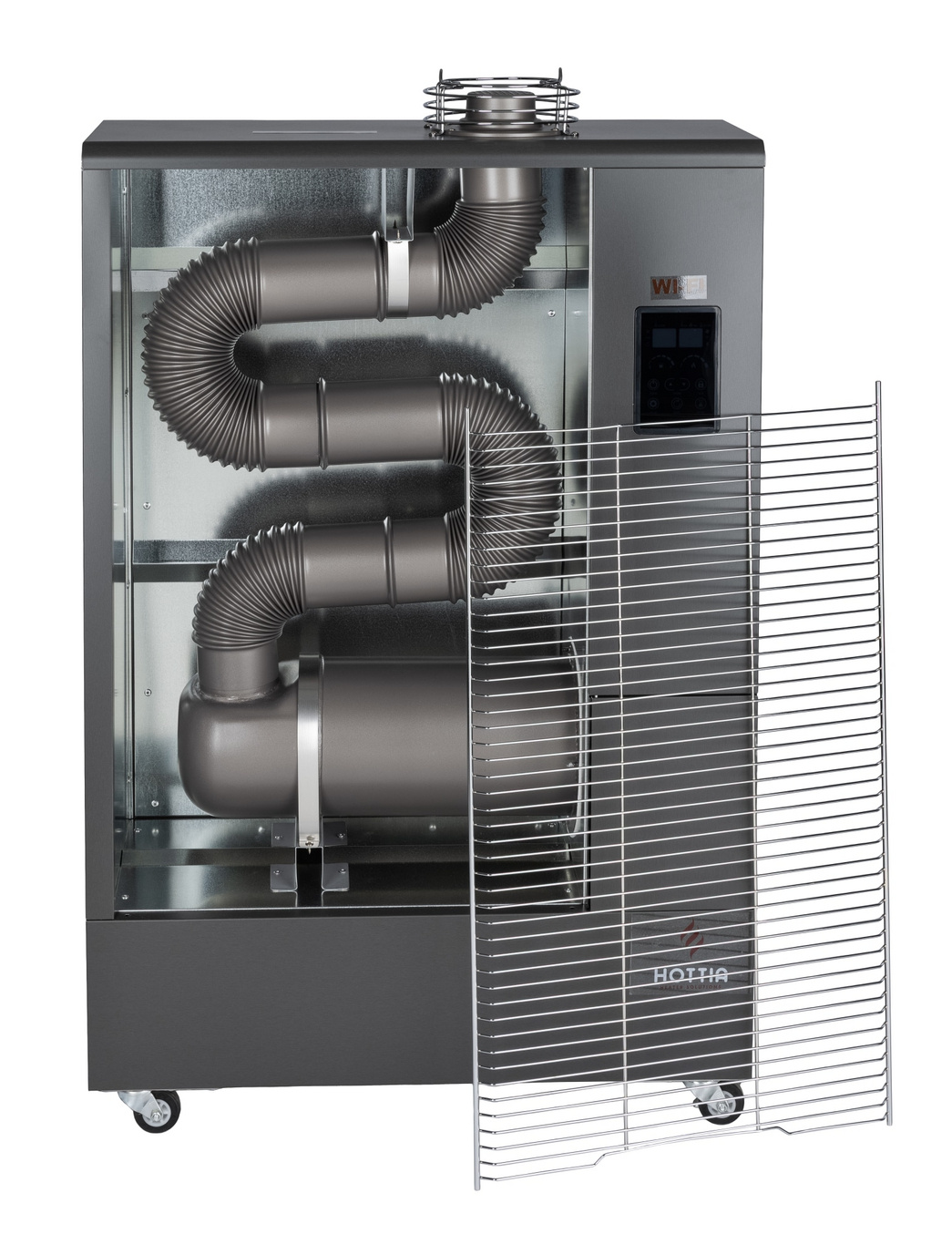 Hottia WiFi-värmare kan styras av en smart enhet via WiFi. Ladda ner appen till din smarta enhet så kan du fjärrövervaka mängden bränsle och värme i rummet, samt stänga av och sätta på din värmare.