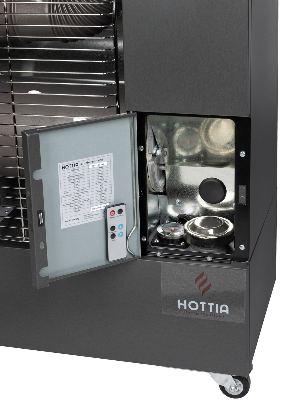 Den infraröda strålningen som produceras av Hottia dieselinfrarödvärmare värmer det fasta materialet i värmezonen, som fungerar som ett värmeutjämnande och värmelagrande material. Från materialen i utrymmet överförs värmen jämnt och behagligt till det omgivande utrymmet. Värmen från Hottias värmare är aldrig för varm. Den högeffektiva förbränningsprocessen med flera komponenter och den exakt kontrollerade bränsletillförseln säkerställer att inga obehagliga lukter eller kolmonoxid släpps ut i luften. Hottia-värmare kräver inte rökgasutsläpp, förutsatt att utrymmet som ska värmas upp är tillräckligt och korrekt ventilerat. För att garantera personsäkerheten rekommenderas att man använder ett rökgasavlopp vid uppvärmning av bostadsutrymmen.