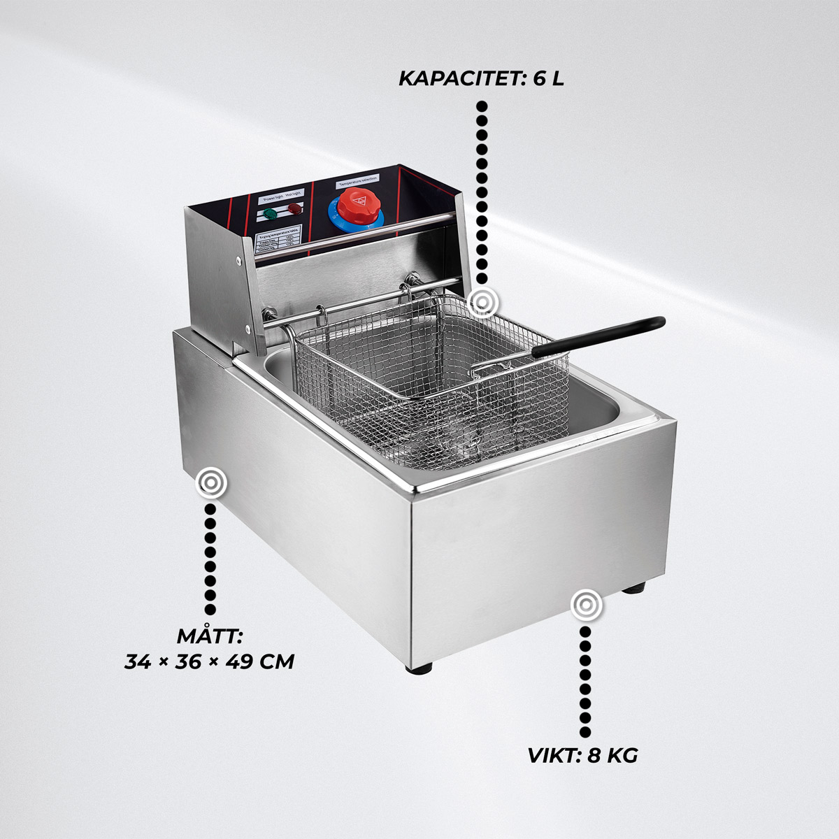 Upplev exceptionell fritöskapacitet med Lykke Fritös 6 L, 2.5 kW. Denna robusta och effektiva fritös är idealisk för både hemmakockar och professionella användare som eftersträvar perfektion i fritering. Med en kropp helt i rostfritt stål och avancerade funktioner, levererar denna maskin inte bara hög prestanda men även säkerhet och enkel användning. Den justerbara termostaten tillåter exakt temperaturkontroll, medan det inbyggda oljeavloppet och den snabba uppvärmningen sparar både tid och energi. Förvandla ditt kök till ett professionellt friteringsområde med Lykke Fritös 6 L.