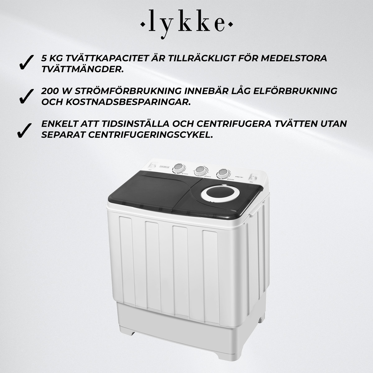 <p>Upptäck den ultimata lösningen för ditt tvättbehov med Lykke Mini Tvättmaskin Pro 2500. Perfekt anpassad för små hushåll eller som en portabel kompanjon på campingresan. Denna högeffektiva mini tvättmaskin kombinerar bekvämlighet och kraftfull prestanda i en kompakt design. Med en kapacitet på upp till 7 kg och integrerad torkfunktion, uppfyller den enkelt de dagliga kraven samtidigt som den är energisnål. Dess moderna utseende i vitt komplementerar även den mest minimalistiska inredning. Låt Lykke Mini Tvättmaskin Pro 2500 förenkla din vardag med stil och effektivitet.</p>