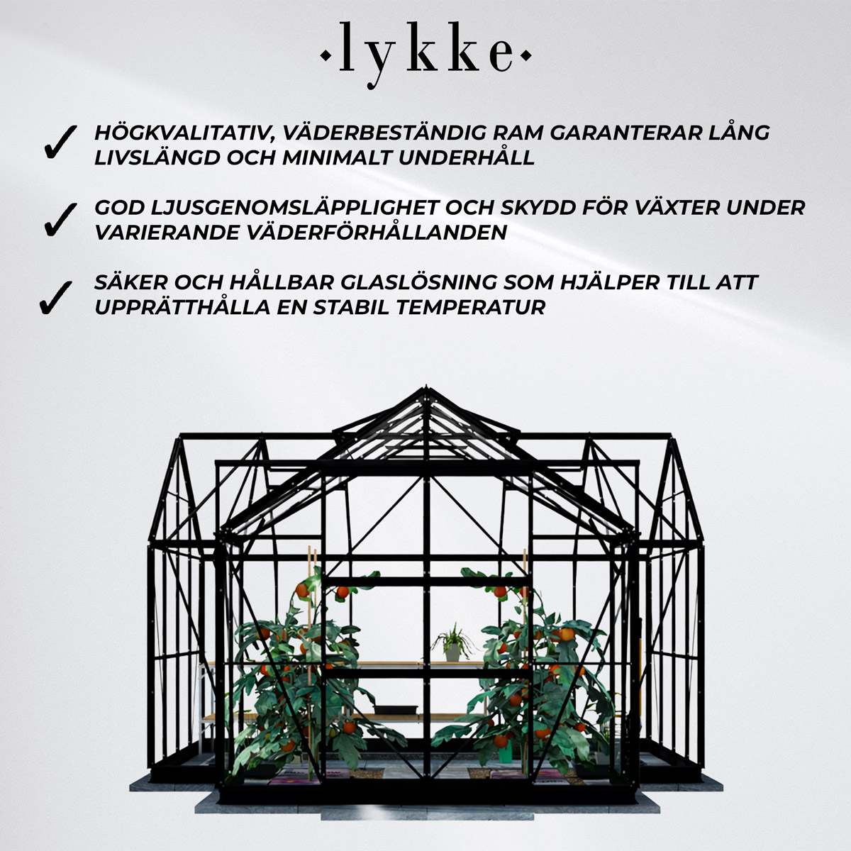 <h4>Varför välja Lykke Växthus T-format Svart 12.8 m2</h4>