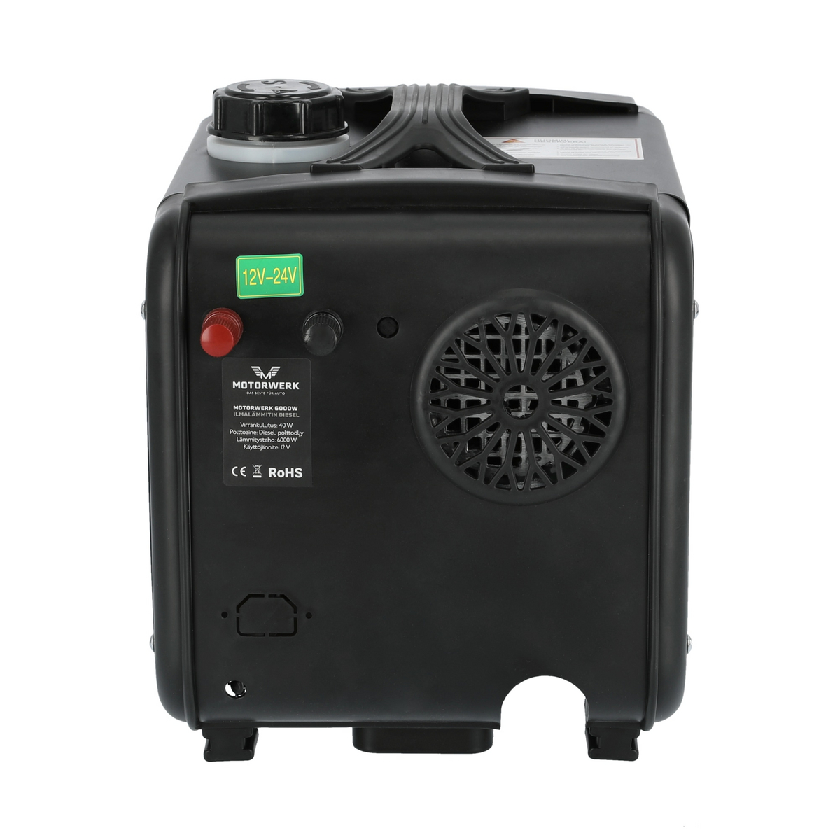 Motorwerks dieseldrivna luftvärmare är en effektiv och lättransporterad avfrostnings- och torkvärmare för tillfällig användning i förråd, båtar, stugor och tält. Värmaren är klar att använda, det är bara att fylla tanken och ansluta kablarna till 12 V ström. Värmaren levereras med luftintag, rökgas- och värmefördelningsrör, ett luftintagsfilter och rörklämmor. Värmen kan förgrenas och distribueras genom fyra utlopp exakt och jämnt runt det utrymme som ska värmas.