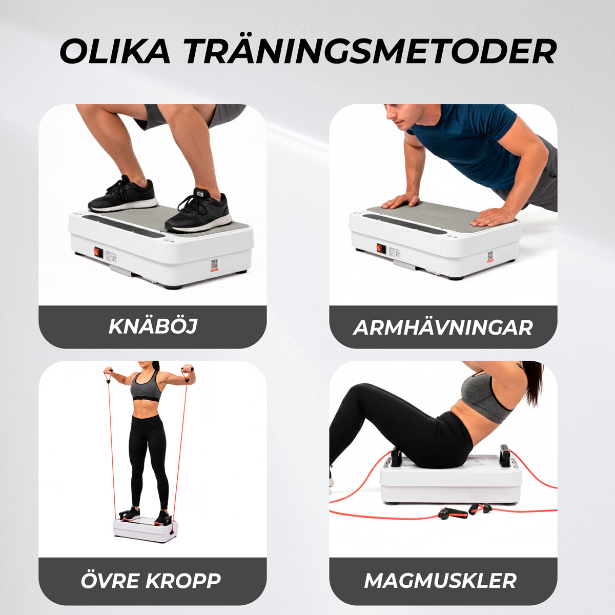 En vibrationsplatta är ett modernt och platsbesparande sätt att aktivera musklerna hemma. Den passar perfekt för uppvärmning, styrketräning och återhämtning när du vill maximera träningsresultatet utan komplicerad utrustning.