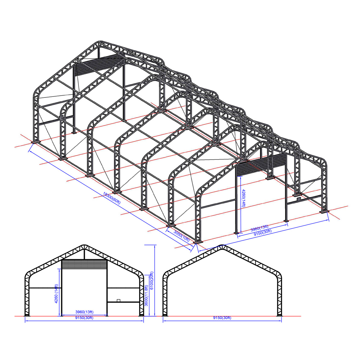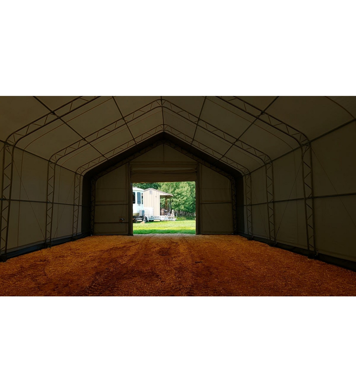 Notera! bilden är för referens, inte i skalen"En dubbelrams utrustningsbod utrustad med en stark 900 g/m² PVC-överdrag.