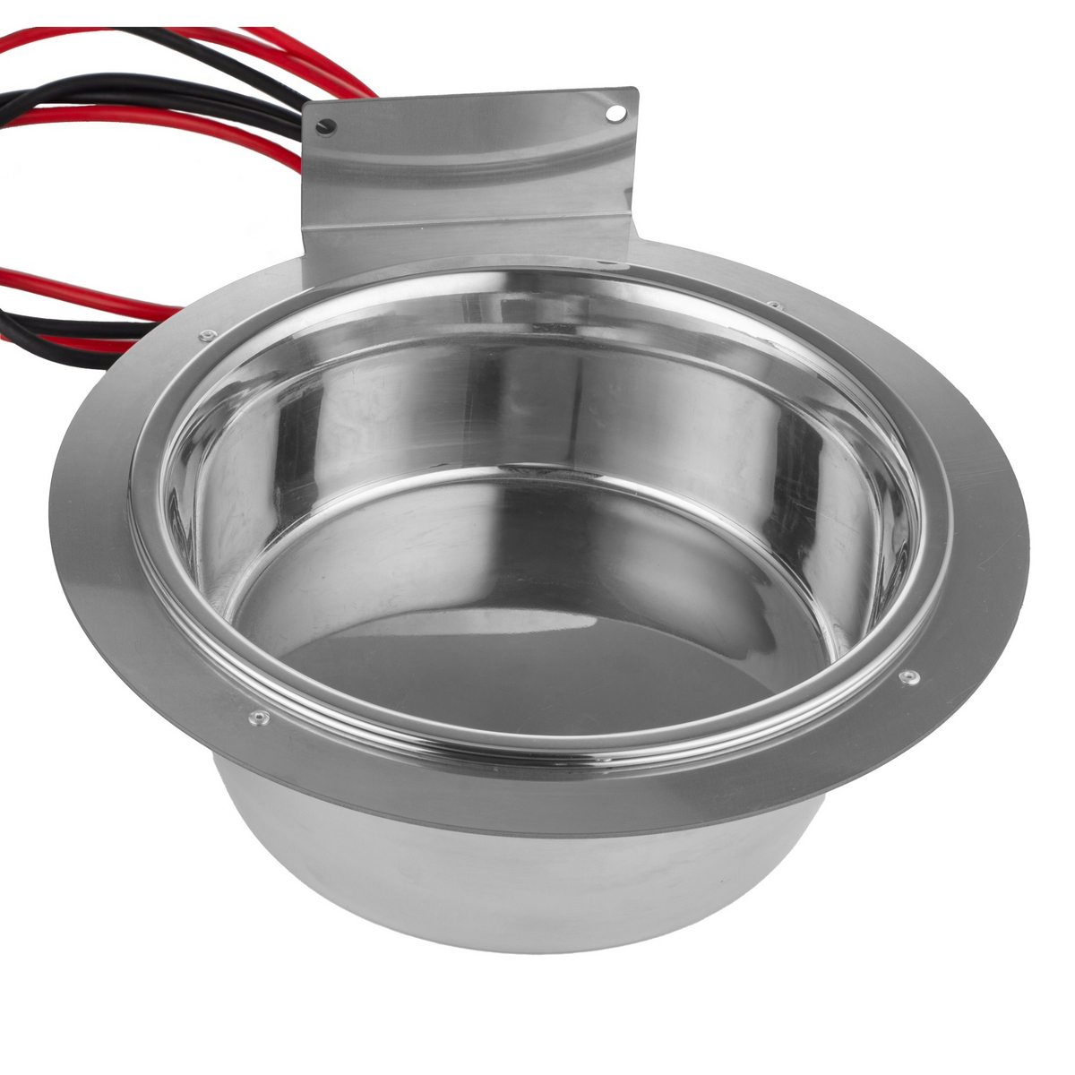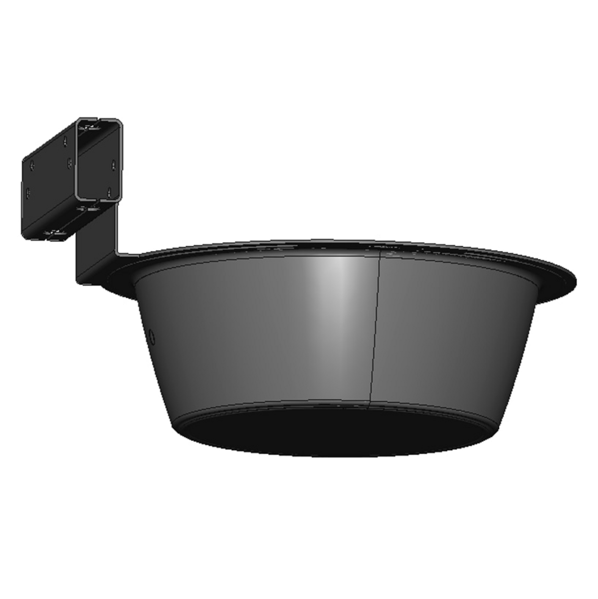 En rejäl, uppvärmd drickskopp av rostfritt stål som kan monteras på väggen eller fästas på hundgårdens nät. Håller hundens dricksvatten effektivt tinat i minusgrader.