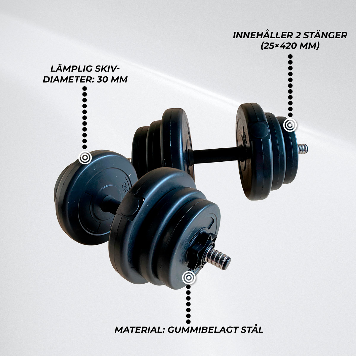 Ett kvalitativt hantelset är grunden för effektiv hemmaträning. Med fria hantlar kan du träna hela kroppen – oavsett om du är nybörjare eller erfaren. Den justerbara belastningen gör träningen progressiv, säker och motiverande.