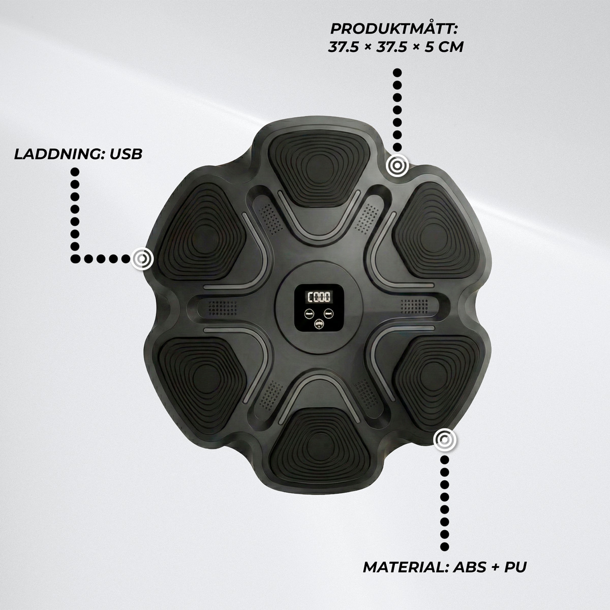 Smart träning: Boxningsmaskinen guidar slagen med ljus- och ljudsignaler, vilket hjälper dig att träna rytm, timing och kontroll på ett tydligt sätt.