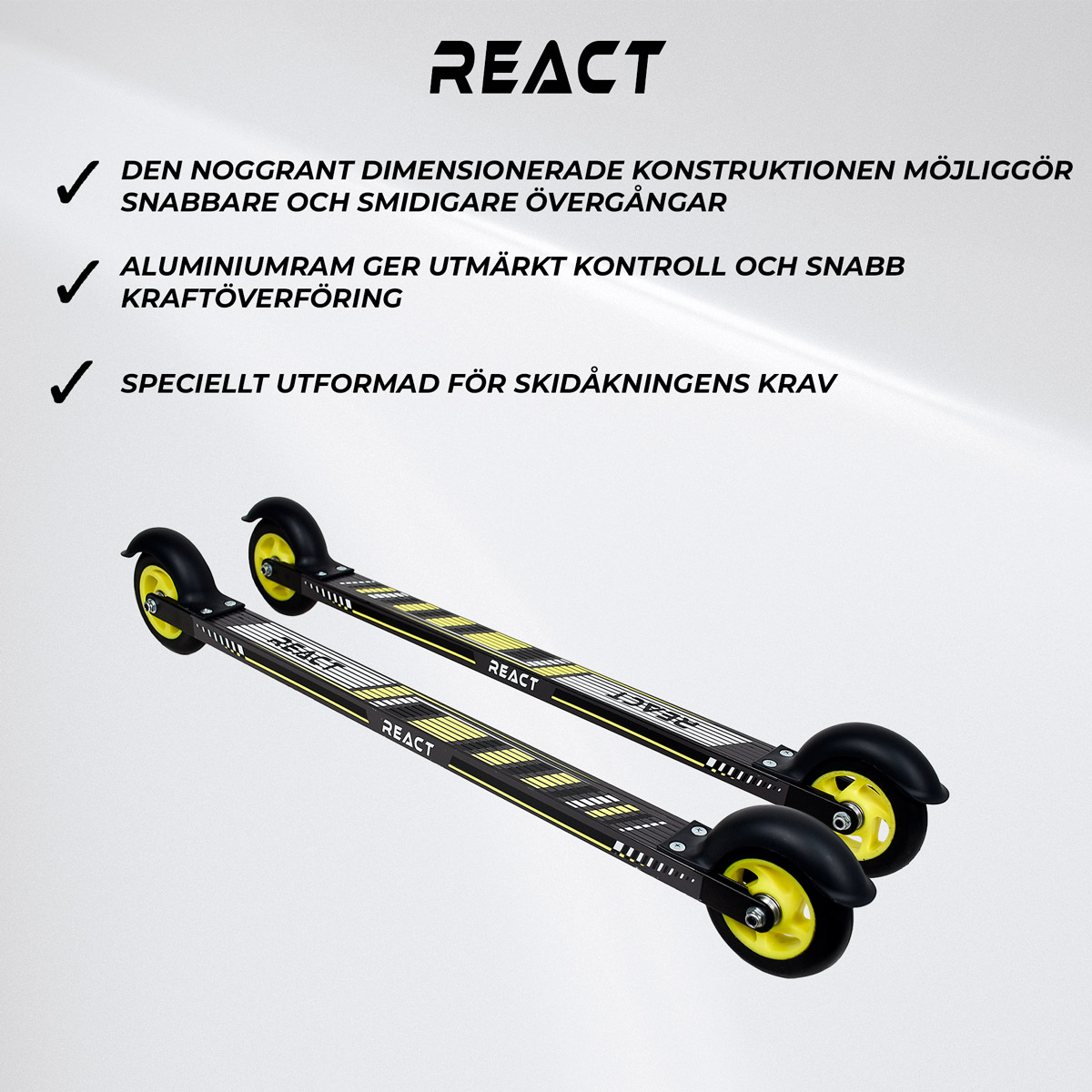 <p>På React skapar vi inte bara sportutrustning; vi omdefinierar vad det innebär att vara en idrottare. Vår mission? Att bränsla din passion och hjälpa dig att överträffa dig själv. Med toppmodern teknologi och innovativ design är vår utrustning gjord för att förbättra din prestanda, uthållighet och hastighet. Oavsett om du siktar på att slå rekord eller personliga gränser, är Reacts utrustning din allierade på varje steg av resan. Gå med i React-communityn idag och upplev skillnaden med utrustning designad med ditt bästa i åtanke. Låt oss överträffa excellens tillsammans.</p><h4>Upptäck Friheten på Hjul!</h4>