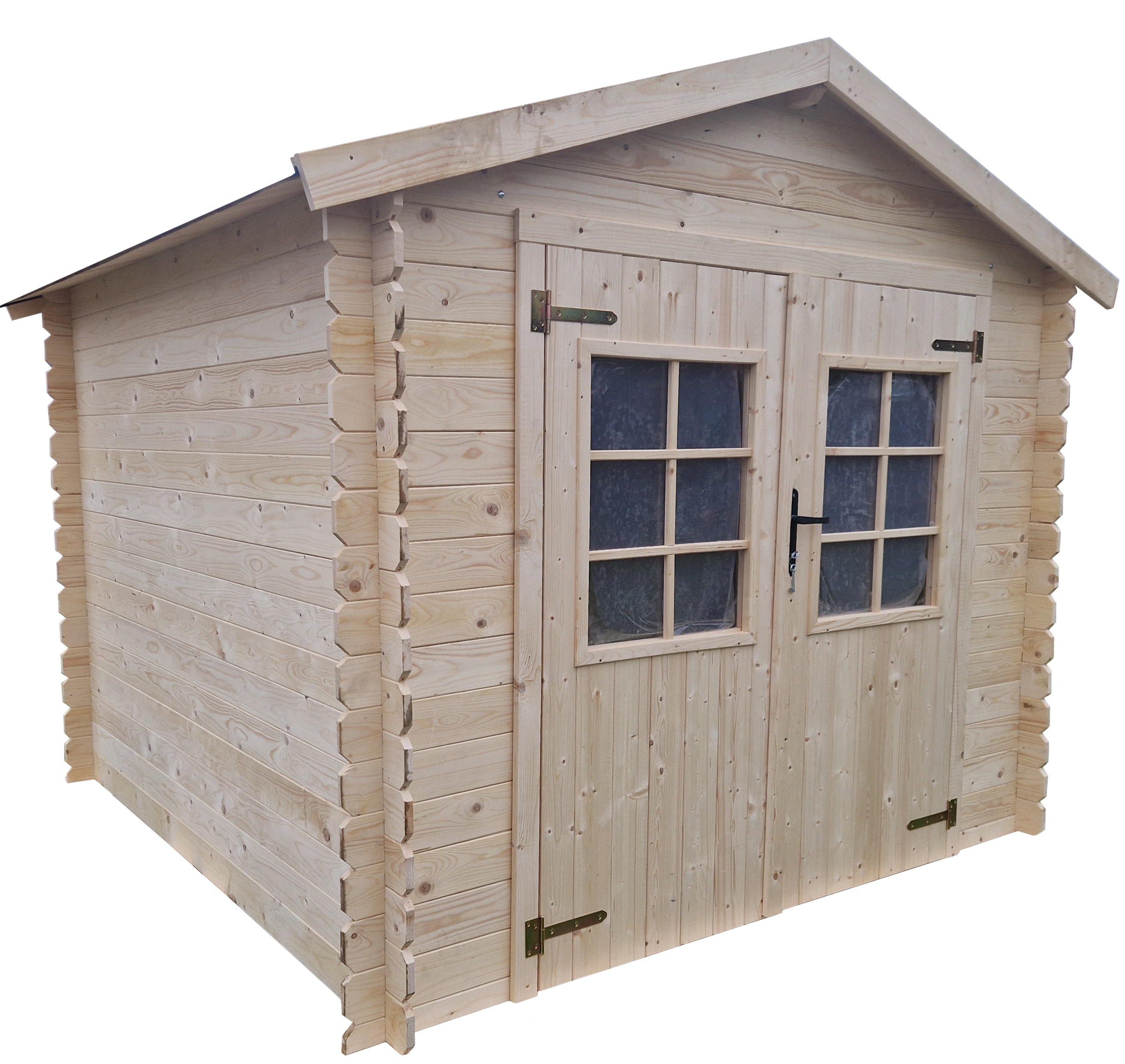 Den stora dubbeldörren ger ett behagligt ljusinsläpp och gör det möjligt att använda skjulet på olika sätt. Skjulet levereras med underlagspapp och vi rekommenderar att du köper till och eftermonterar takpapp för motsvarande 8 m2.