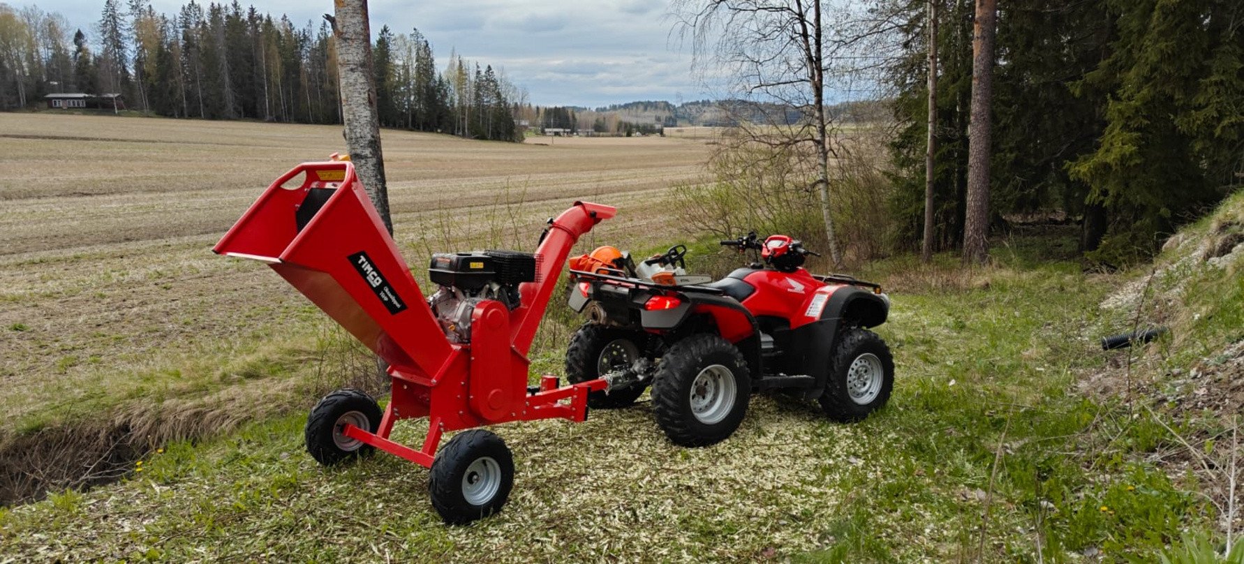Kraftfull grenförstörare med bästa möjliga pris-kvalitetsförhållande. Timco 15HP Shredder är utrustad med en 420cc fyrtaktsmotor tillverkad av Ducar. Bekväm att dra bakom till exempel en ATV. Den resulterande flisen är grov och mycket lämplig för kompostering, bränsle eller som täckning för planteringsbäddar. Den extra breda hjulbasen gör det lättare att dra flishuggen även på ojämnt underlag.