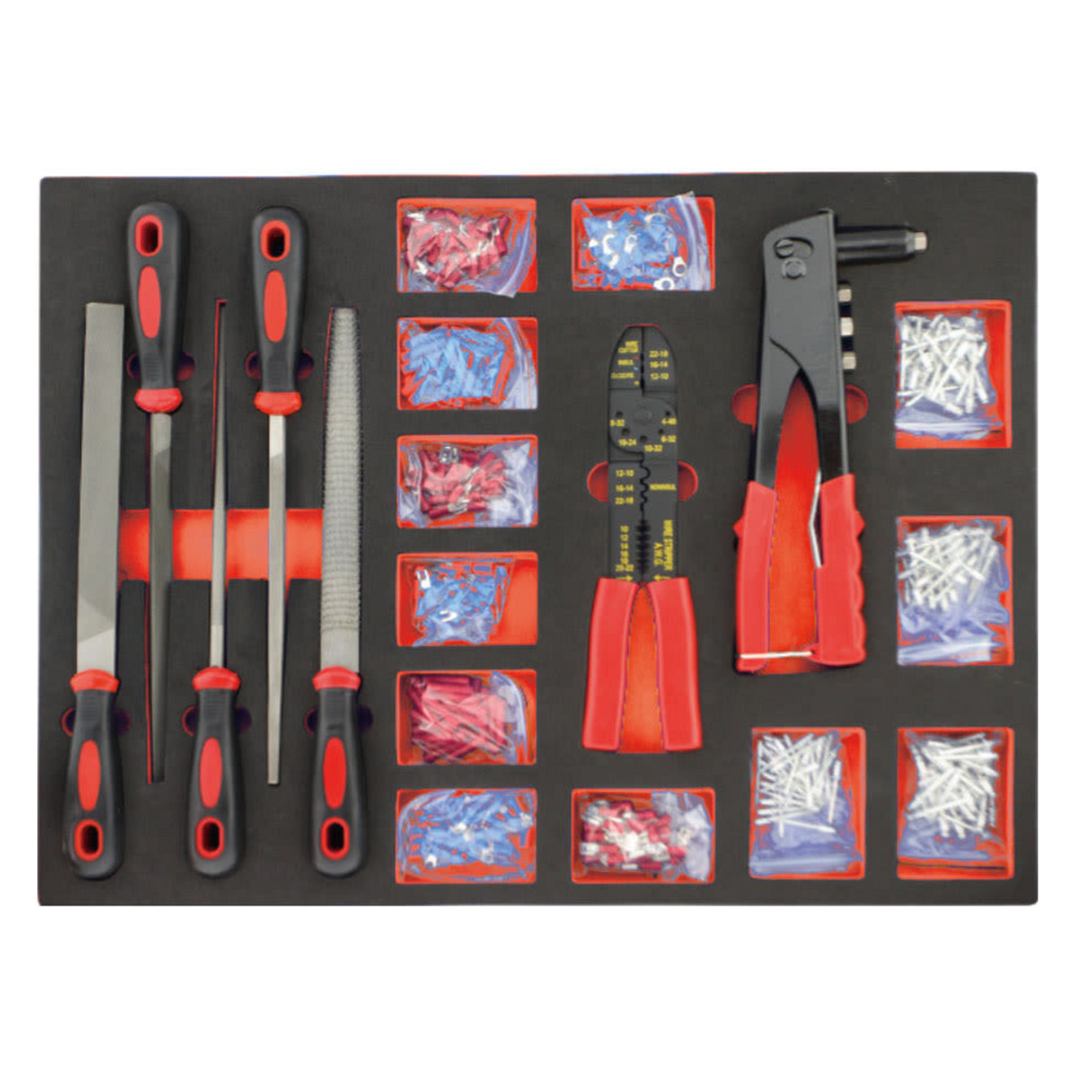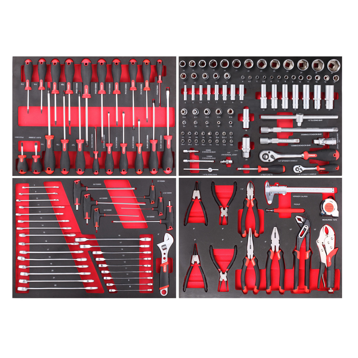Timco Elite verktygsvagn är en massiv verktygsvagn designad för professionellt bruk. Verktygsvagnen innehåller ett omfattande urval av 489 hållbara och moderna verktyg, som var och en har sin egen plats i FOAM-kuddarna. Verktygsvagnen har mjukt rullande hjul under sig, vilket gör att flytta verktygsvagnen lätt och lätt. Att två av verktygsvagnens hjul är fasta och två är svängbara gör den lättare att flytta. Två av hjulen är låsbara, så även verktygsvagnen sitter säkert på plats.